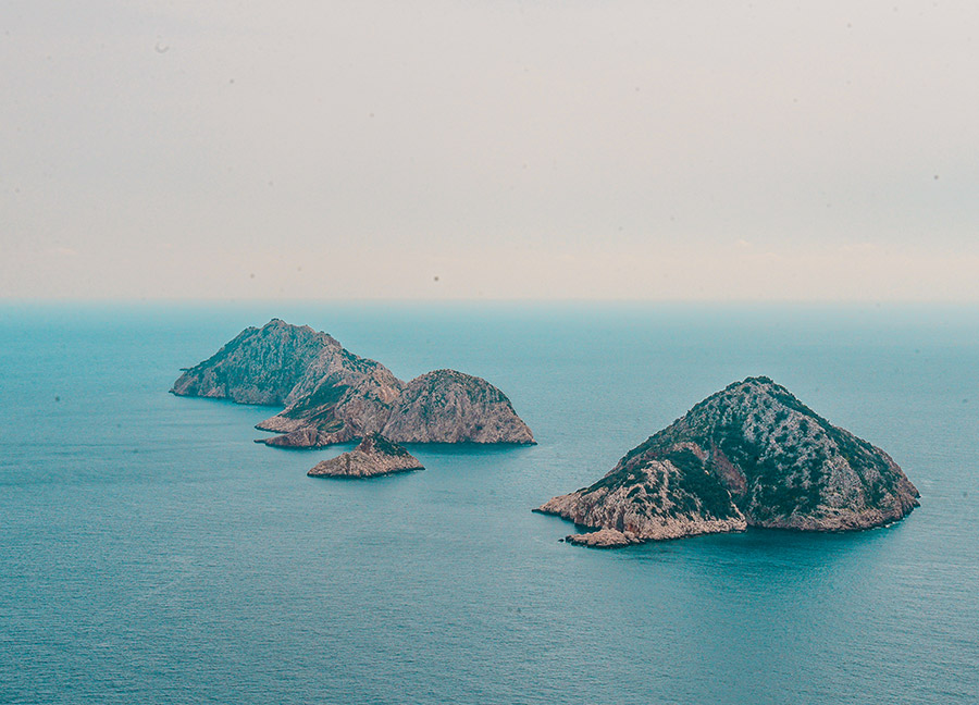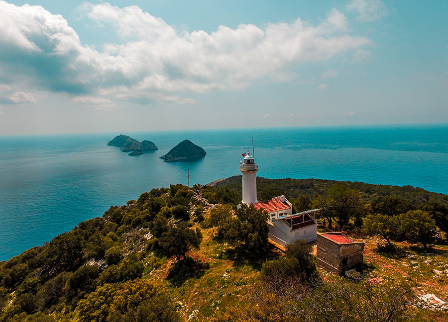 Kemer Tekirova açıklarında bulunan Martı, Mağara, Piknik ve Küçükada olmak üzere dört adadan oluşan üç adalar dalış noktası; sualtı severler için farklı çeşitlerde dalış yapılabilen zengin bir dalış noktasıdır. Bölgede C-47 Dakota uçak batığı, sahil güvenlik botu batığı, mağara, çapa, piramit, doğal bir resif olan duvar gibi farklı dalış alanları bulunmaktadır. Üç adalar bölgesi genel olarak tecrübeli dalıcılara hitap etmekte olup, tecrübeye göre 30 35 metre derinliklere dalış tecrübe etmek mümkündür. Ayrıca üç adalar bölgesinde kaplumbağaların sık görülebildiği kumluk bir alan da bulunmaktadır.